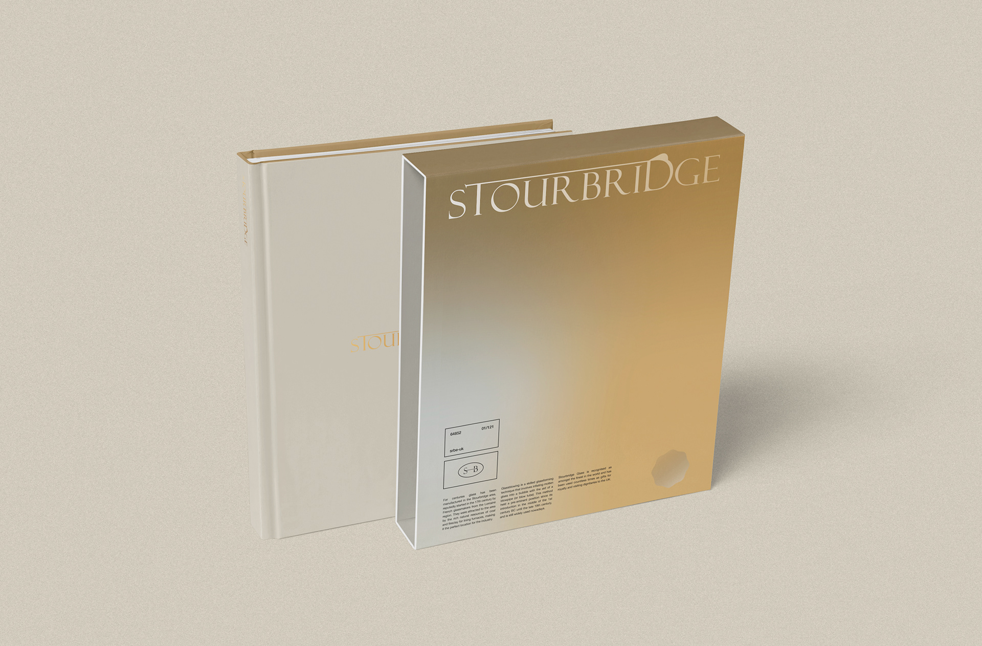 The identity solution includes a delicate serif typeface to translate the years of experience and craft that the company offers as well a warm gold to evoke prestige and quality. A set of shapes have been created to represent the products that are made by Stourbridge Glassworks, together with a selection of gradients inspired by the way light shines through glass. The logo incorporates the glass blowing tubes used in glassforming, extending the letter 'T' to 'D' in the name Stourbridge.